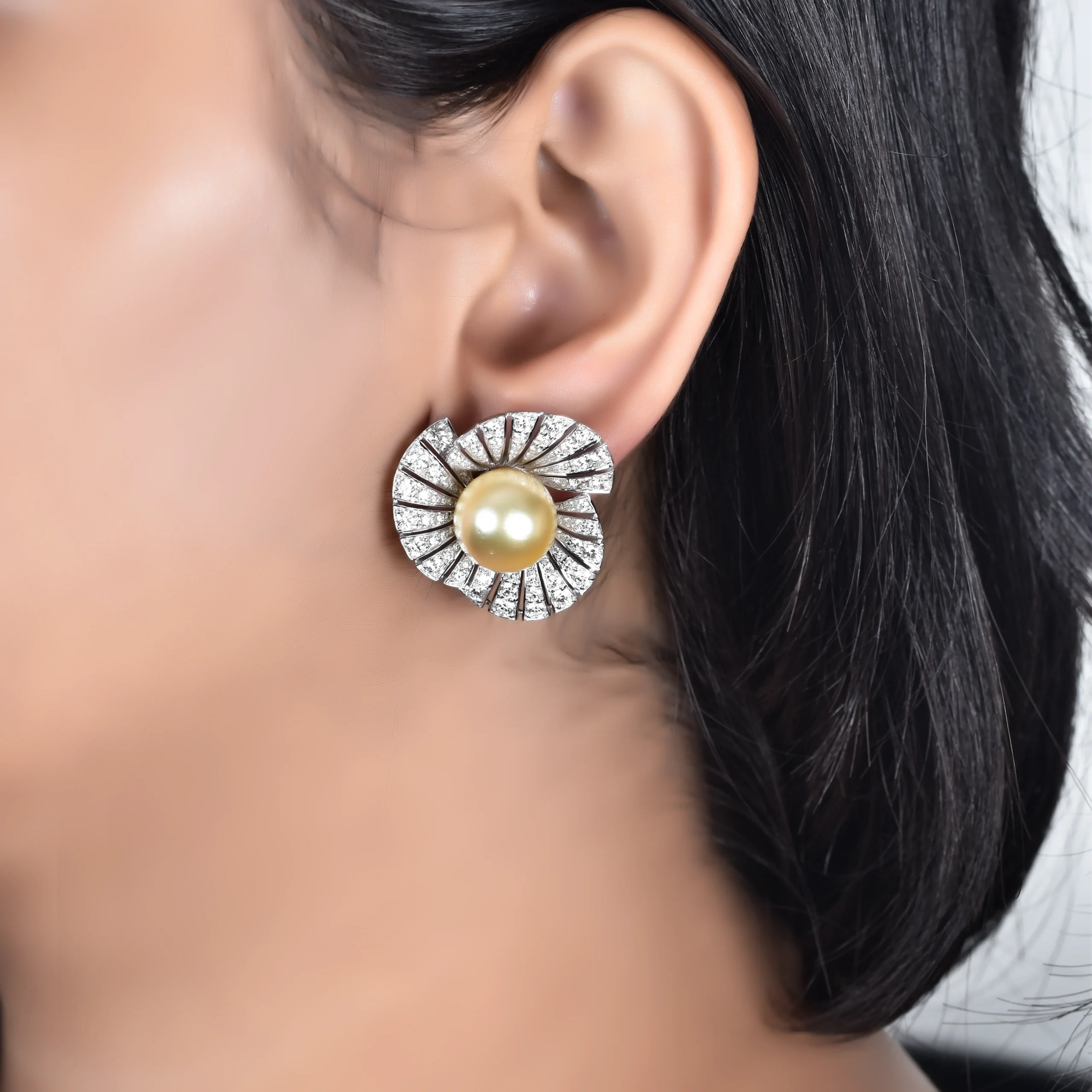 Inspired by the gentle elegance of a blossoming moonflower, the Luna Bloom Earrings feature lustrous pearls encircled by radiating diamond petals. A graceful harmony of vintage artistry and modern glamour — perfect for timeless sophistication.