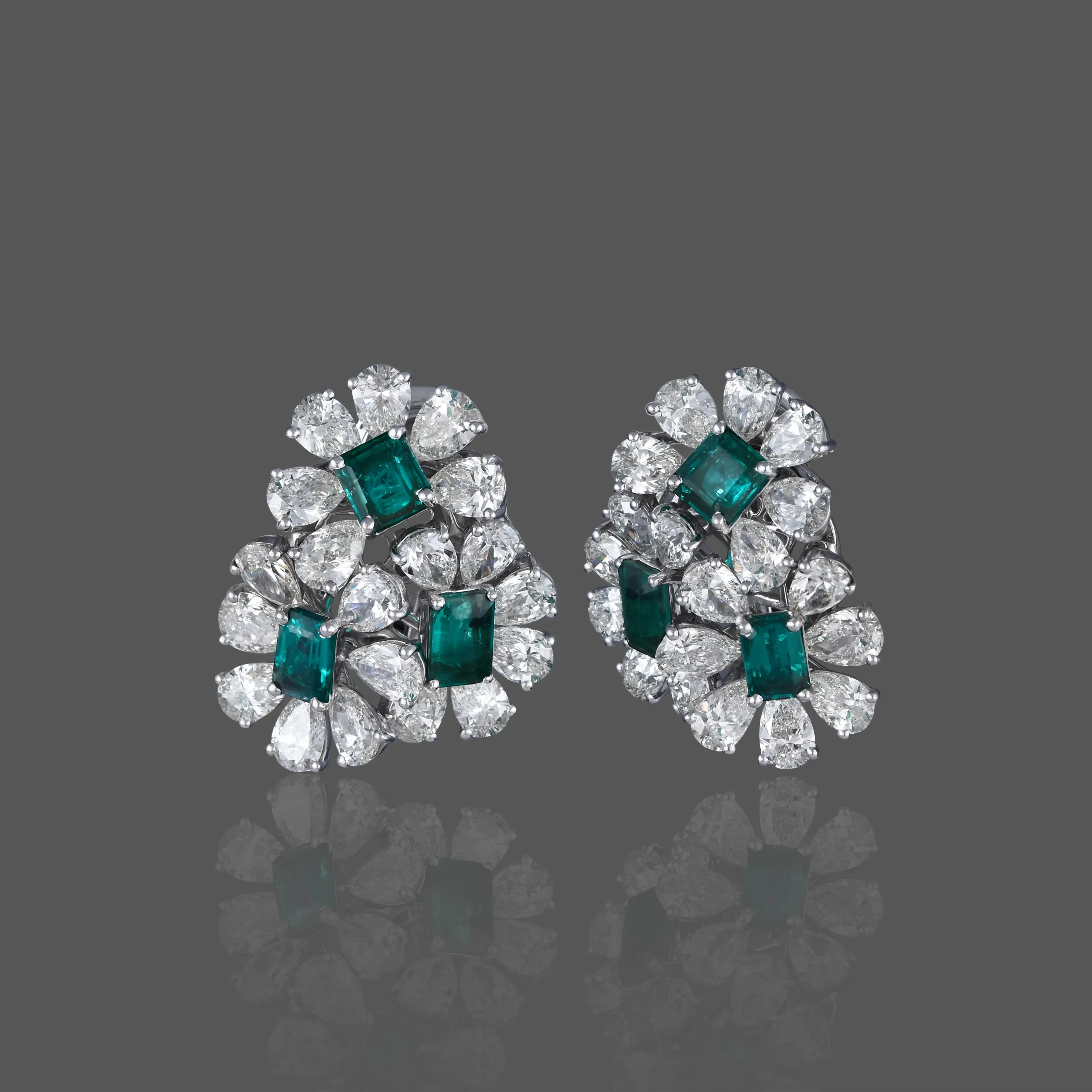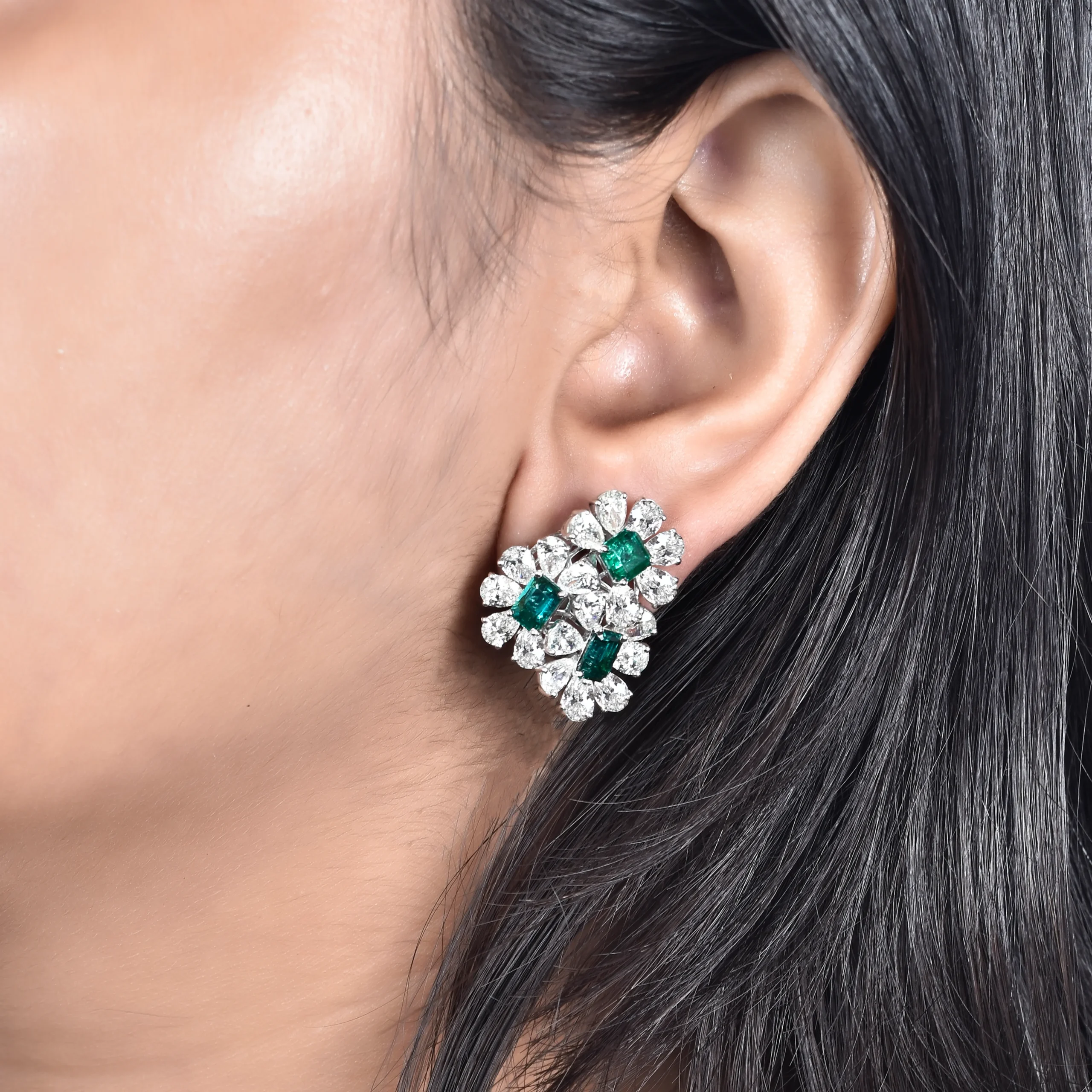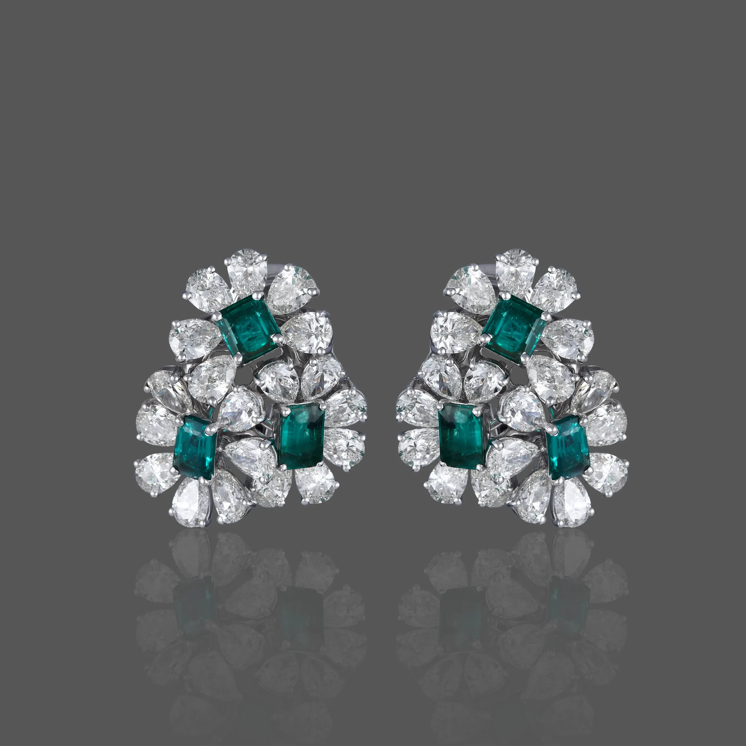 Inspired by nature’s elegance, the Verdant Bloom Earrings showcase radiant emerald-cut emeralds embraced by brilliant pear-shaped diamonds. A floral harmony of green and white, these earrings evoke timeless grace and botanical brilliance — perfect for soirées and statements alike.