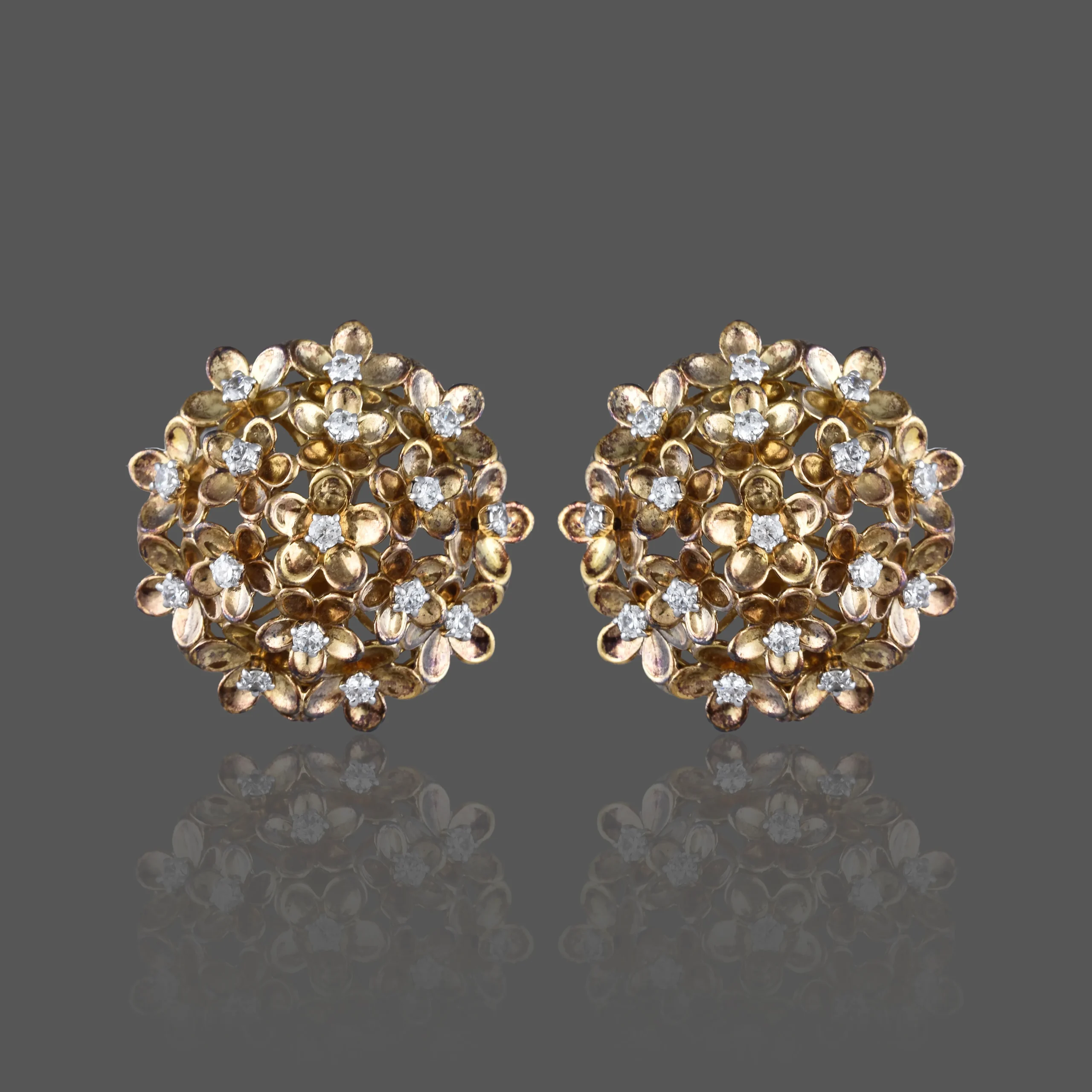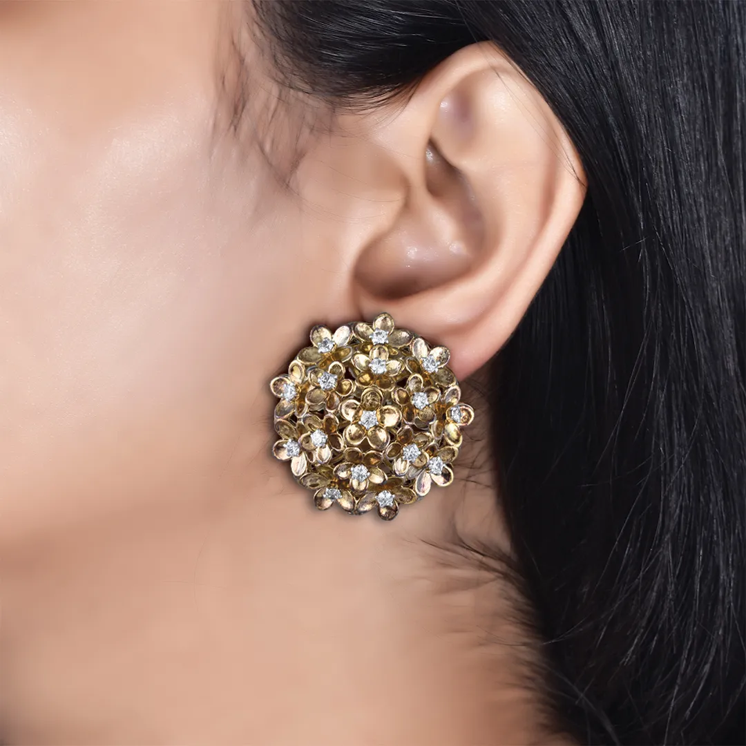 An exquisite bouquet captured in gold, the Blossom Aura Earrings are delicately crafted with floral motifs, each petal adorned with sparkling diamonds. Radiating timeless grace and intricate artistry, they are a celebration of nature in its most luxurious form